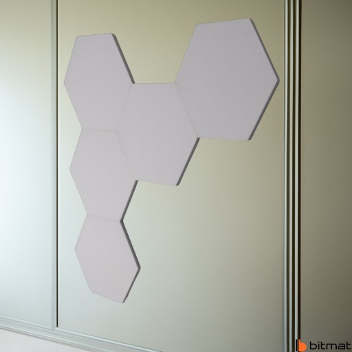 Chcesz stworzyć przestrzeń, w której dźwięk jest czysty, a echo i pogłos znikają? Panel akustyczny Hexagon firmy Bitmat o grubości 3 cm to doskonałe rozwiązanie. Dzięki swoim właściwościom akustycznym i nowoczesnemu designowi jest idealny zarówno do użytku domowego, jak i profesjonalnego. Jasnoszary kolor dodaje elegancji i pasuje do każdego wnętrza, a możliwość tworzenia układów z różnych paneli pozwala na personalizację przestrzeni.