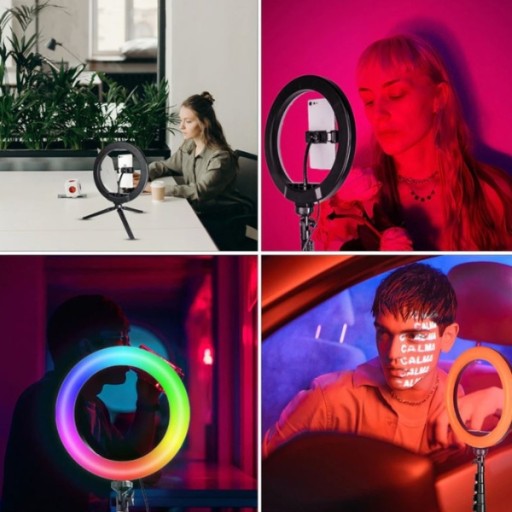 ⭐️ZESTAW MOCNA LAMPA PIERŚCIENIOWA RING DO SELFIE LED RGB STATYW+PILOT USB