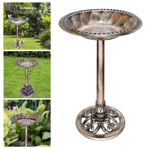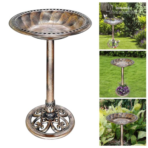 Wykwintne prace ręczne: Odporna na warunki atmosferyczne kąpiel dla ptaków ma wykwintne detale rzeźbienia są wygrawerowane. Zakochasz się w jasnym kwiecie, a ptaki zakochają się w niecce wodnej.