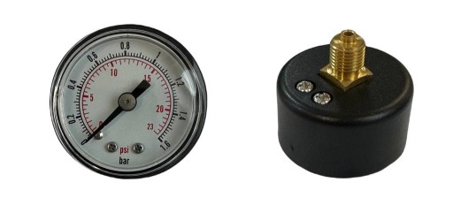 Manometr ma tylne wyjście i jest wkręcany w zawór 6-drogowy.