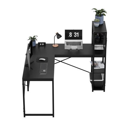 Угловой письменный стол С ЧЕРНЫМИ ПОЛКАМИ LOFT Mark Adler Leader 5.9 Черный