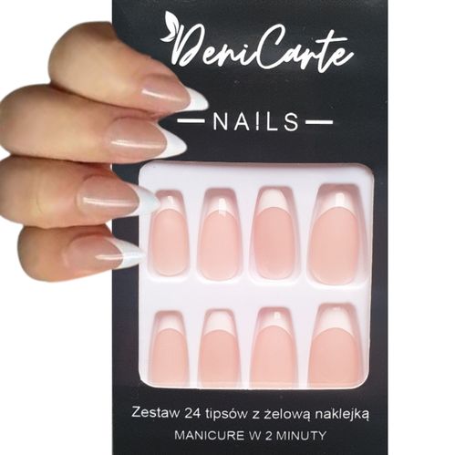 - 24 sztuki gotowych tipsów w różnych rozmiarach, co pozwala na perfekcyjne dopasowanie do płytki paznokcia