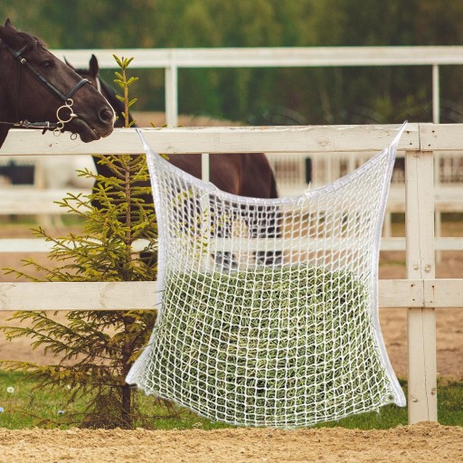 [Konstrukcja siatki]: Konstrukcja siatki ułatwia koniom jedzenie, a także pozwala kontrolować ilość spożywanego pokarmu