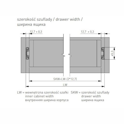 - uniwersalne zastosowanie do szuflad z frontem wpuszczanym i nakładanym;