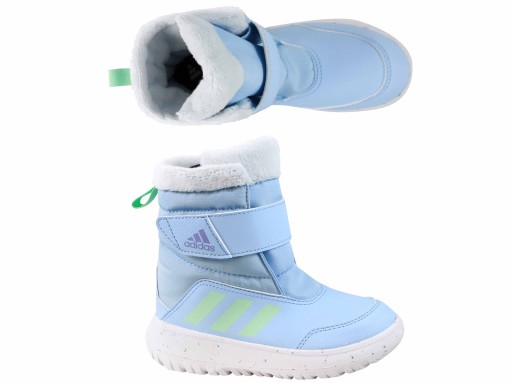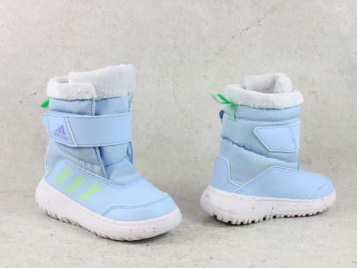 Śniegowce dziecięce ADIDAS WINTERPLAY to idealne rozwiązanie dla najmłodszych w chłodne dni. Dolna część kozaczków jest wykonana z gumy. Ocieplana wkładka o miękkiej i przyjemnej fakturze doskonale izoluje od zimna i wilgoci. Buty ocieplone zostały ciepłym futerkiem.
