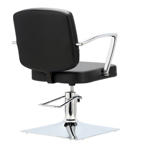 Fotel charakteryzuje się eleganckim i ergonomicznym designem, który pozwala na wygodną pracę fryzjera oraz relaks klientów.