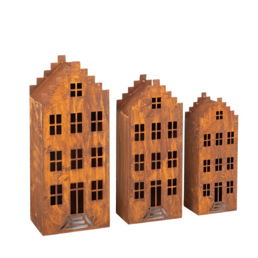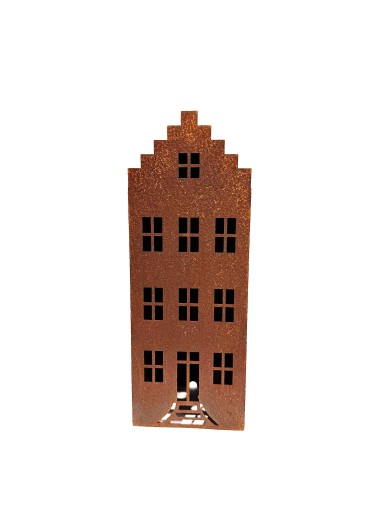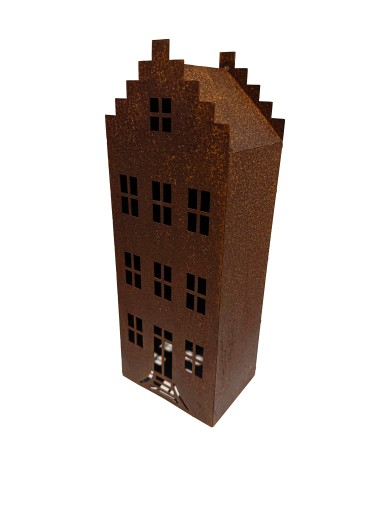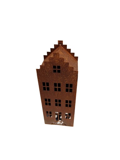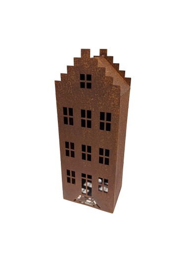 LAMPION NA ŚWIECE LED DOMEK OGRODOWY DO DOMU ŚREDNI CORTEN RDZAWY 38 CM
