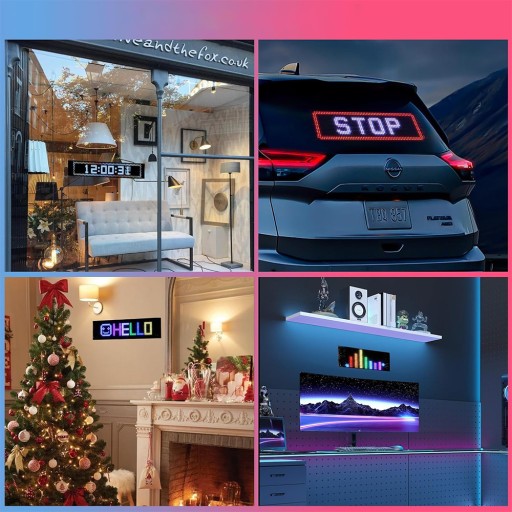 Najnowsze znaki LED, pozwalają na bezpieczne używanie ich na przednich i tylnych szybach samochodów; Szerokie zastosowanie obejmuje ekrany LED, znaki samochodowe, znaki reklamowe oraz znaki wyjścia i wejścia. Szeroko stosowane w samochodach, sklepach, barach, recepcjach hotelowych, kinach, hotelach, domach oraz dekoracjach świątecznych lub ślubnych.