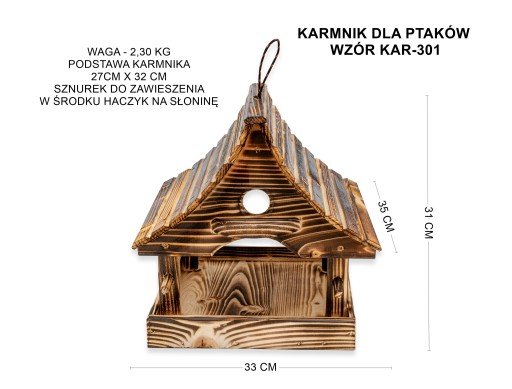 Karmnik posiada sznurek do zawieszenia np. na drzewie ,balkonie, tarasie.