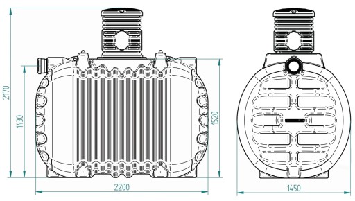 - Wysokość wlotu od dna zbiornika: 1430 mm