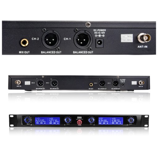 Stacja bazowa systemu DNA WM4 VOCAL SET wyposażona została dwie anteny o wysokiej czułości, cztery zbalansowane wyjścia mikrofonowe typu XLR oraz niezbalansowane wyjście audio 1/4". Z przodu znajduje się panel sterowania z dwoma dużymi, czytelnymi wyświetlaczami LCD oraz czterema potencjometrami umożliwiającymi niezależną kontrolę głośności każdego mikrofonu. Wszystkie parametry pracy systemu są dobrze widoczne i mogą być łatwo i szybko konfigurowane. Dodatkowo cała stacja bazowa może być instalowana w rack’u. To bardzo wygodne rozwiązanie, które dodatkowo zabezpiecza odbiornik podczas pracy w terenie oraz ułatwia transport i przechowywanie sprzętu.