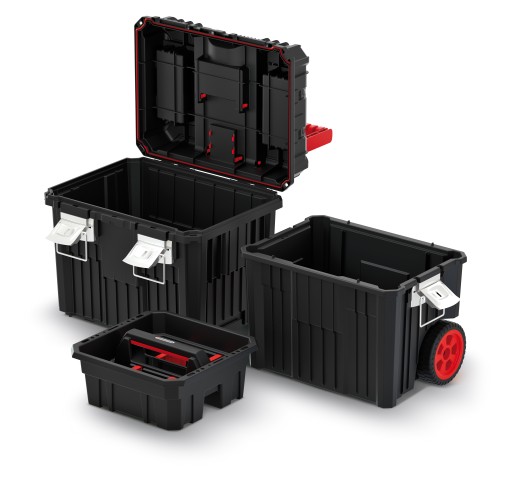 Wyroby serii HEAVY zostały zaopatrzone w nosidło, uchwyt na śrubokręty oraz przegrody ułatwiające organizację przestrzeni dla narzędzi ręcznych i akcesoriów. W pokrywach zostały wbudowane organizery, wyposażone w demontowalne przegrody i kubeczki ułatwiające magazynowanie elementów drobnicowych, klapy organizerów wykonane z wytrzymałego poliwęglanu. Seria Heavy posiada moduł jezdny, zaopatrzony w bieżnikowane koła oraz dwa praktyczne uchwyty ułatwiający przemieszczanie i dźwiganie zestawu.