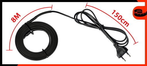 PRZEWÓD GRZEJNY kabel grzewczy samoregulujący z WTYCZKĄ | 230V | 80W | 8M