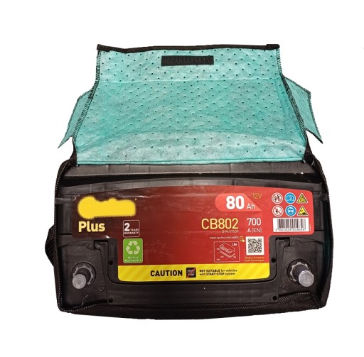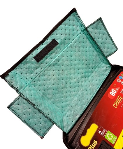- Pokrowce wykonane są z dwóch warstw materiału o podwyższonej odporności chemicznej z dodatkową warstwą izolacyjną która zapobiega szybkiemu spadkowi temperatury elektrolitu w akumulatorze.