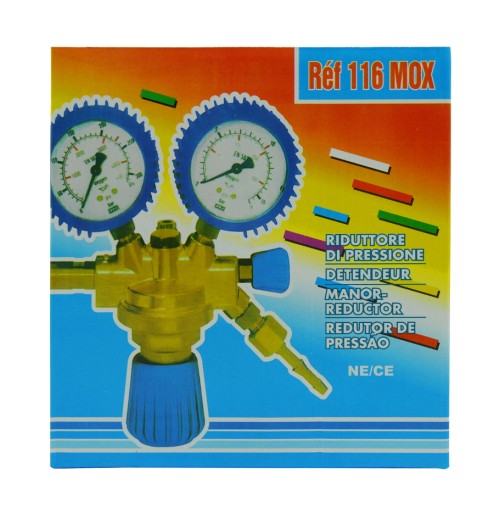 Reduktor jest niezbędnym narzędziem w procesach spawania i cięcia. Ten reduktor został wyposażony w dwa manometry, z których każdy znajduje się w gumowej osłonie, co zapewnia dodatkową ochronę i wygodę podczas pracy.