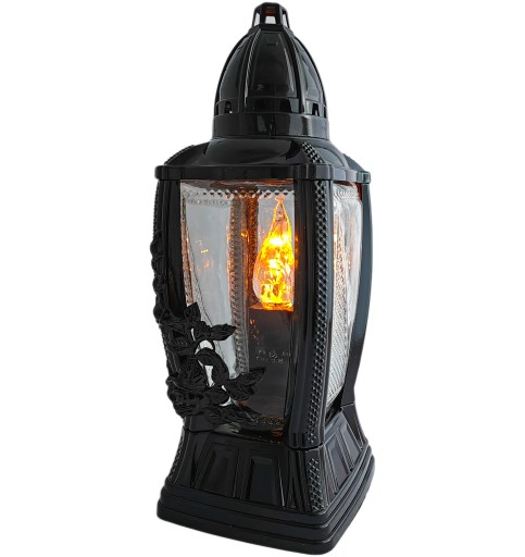 Kapliczka na grób wykonana z grubego i bezbarwnego szkła. Czarna obudowa znicza zrobiona została z tworzywa sztucznego i wykończona w połysku. Znicz jest ciężki, solidny i dobrze wykonany.