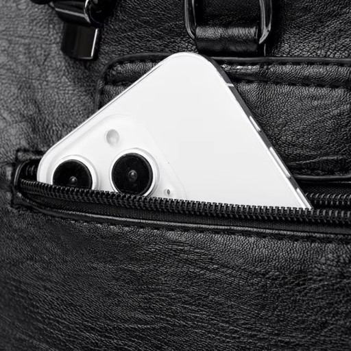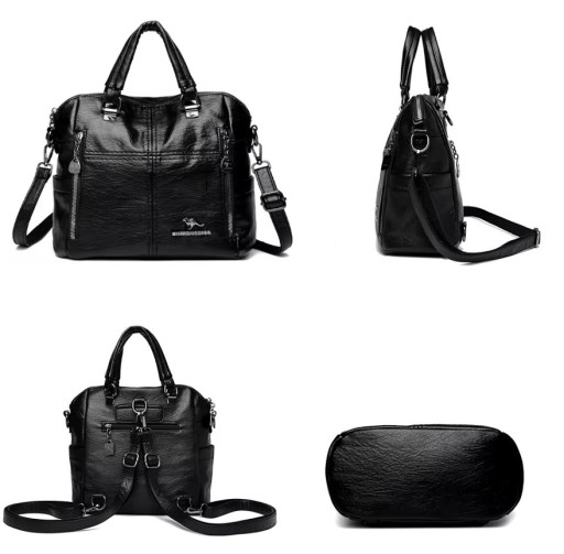 TOREBKA PLECAK 2W1 DAMSKI MIEJSKI DO PRACY SZKOŁY EKOSKÓRA TORBA NA RAMIĘ CZARNA