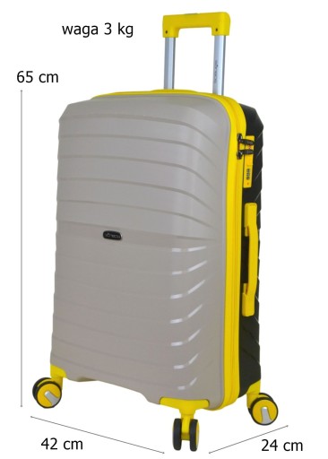 Unikalny design: Połączenie eleganckiej, matowej szarości z intensywną żółcią i głęboką czernią to odważny wybór, który przyciąga wzrok. Te kolory doskonale się uzupełniają, nadając walizce wyjątkowy charakter.