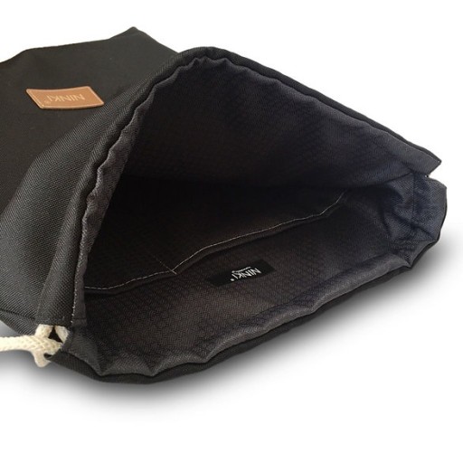 - podszewka worko-plecaka nie jest przyszyta do dna, dzięki temu podszewkę można łatwo wywinąć i wyczyścić wnętrze plecaka np. pod wodą.