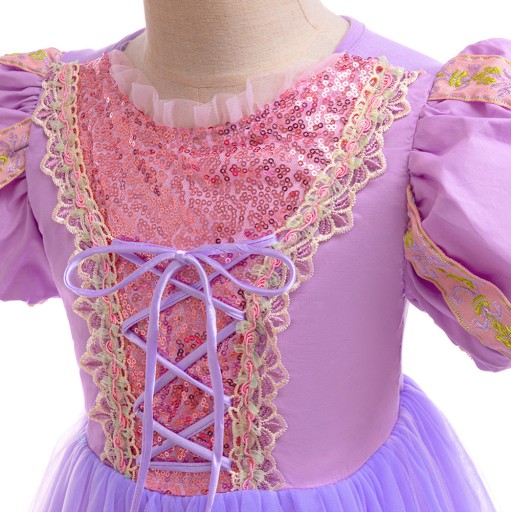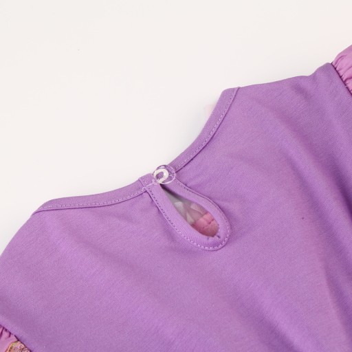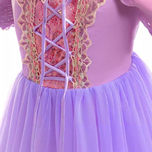 - Czas na bajkową zabawę! Sukienka inspirowana postacią Roszpunki z popularnej bajki "Zaplątani" jest wyjątkowa dzięki wyjątkowym detalom, które dodają jej bajkowego wdzięku.