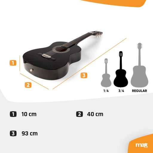 Gitara klasyczna 3/4 do nauki młodzieżowa SoloArt Max czarna+ akcesoria