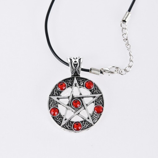 Naszyjnik o długości 50 cm z zawieszką Pentagram z czerwonymi kamykam z serialu SUPERNATURAL !