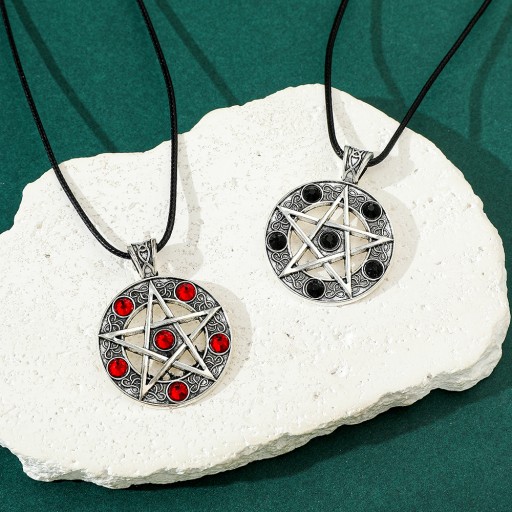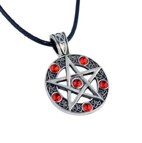 "Czarny Pentagra wysadzanymi czerwonymi kamyczkami"