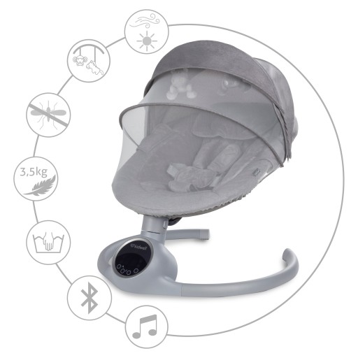 - Wbudowane melodie oraz timer dla czasu kołysania- 8, 15 lub 30 min