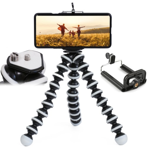 Dzięki standardowemu gwintowi 1/4 cala oraz adapterowi na 3/8" statyw jest kompatybilny z szeroką gamą akcesoriów i urządzeń. Możesz do niego przymocować uchwyt na telefon, oraz aparaty wyposażone w mocowanie na gwint 1/4" i 3/8".