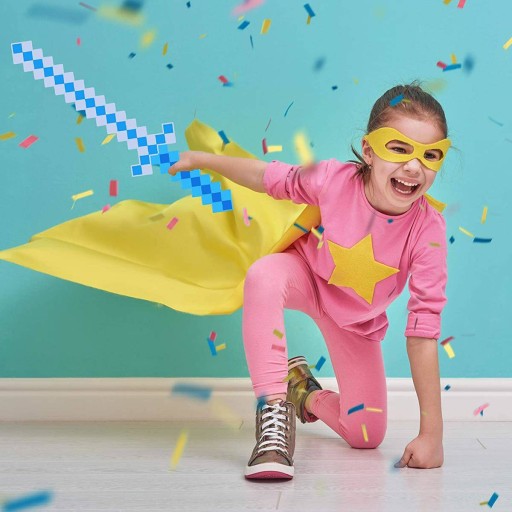 Miecz Pixel przypominający broń z popularnej gry komputerowej to idealna zabawka dla każdego fana.Każda osoba długo grająca w grę, utożsamia się ze światem przedstawionym i pragnie mieć jego namiastkę w realnym życiu. Miecz posiada przycisk, który aktywuje dźwięki walki oraz efekty świetlne.