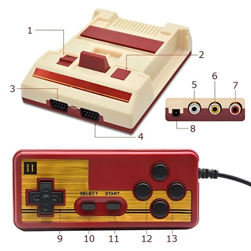 Plug & Play – wystarczy kilka chwil, aby zanurzyć się w świecie retro gier! Konsola została zaprojektowana tak, aby każdy mógł cieszyć się nią bez skomplikowanych ustawień.