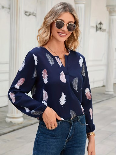 Bluzka damska z urokliwym nadrukiem piór to prawdziwa poezja w świecie mody.