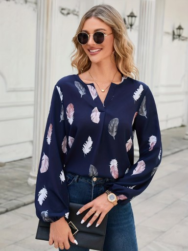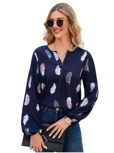 ЖЕНСКАЯ ЭЛЕГАНТНАЯ БЛУЗКА С ДЛИННЫМ РУКАВОМ И ПЕРЬЯМИ