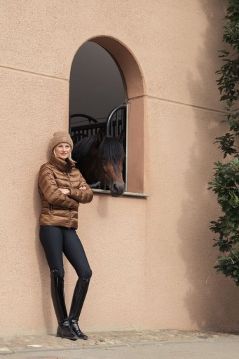 - Elegancki design: Błyszczący materiał, smukły krój i luksusowe detale sprawiają, że kurtka idealnie nadaje się zarówno do stajni, jak i do codziennych stylizacji.
