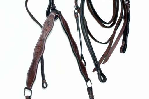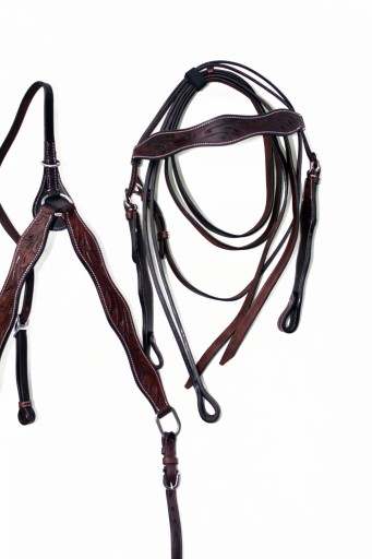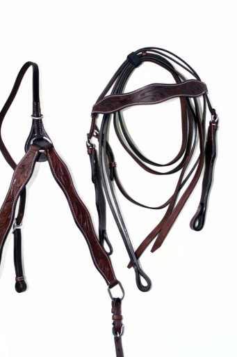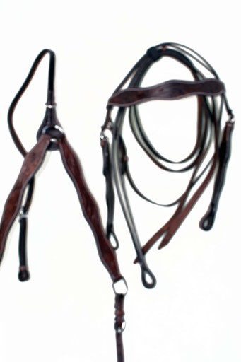 Ogłowie Western z USA +wodze+napierśnik roz. Full .Ogłowie wyprodukowane w zakładzie w USA .Wykonane z najwyższej jakości skóry bydlęcej bardzo miękkiej i miłej w dotyku , .Ogłowie zapinane i regulowane jest na stabilne sprzączki , wykonane z bardzo dobrej nierdzewnej stali szlachetnej .Jedyny taki model w Polsce Zapraszam do zakupu.