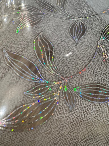 - Kolorystyka/ wzór : przezroczysty, imitacja szkła na stole z dodatkiem holograficznego brokatu