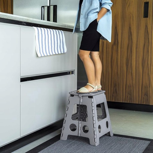STOŁEK TABORET SKŁADANY ANTYPOŚLIZGOWY ROZKŁADANY SZARY DUŻY 40 cm 120 kg