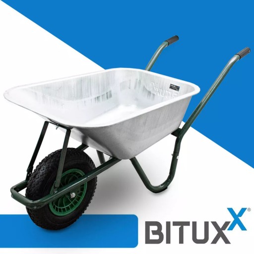 ✅ Taczka została wykonana z ocynkowanej stali (misa) oraz lakierowanego stelażu, co zapewnia odporność na korozję i długą trwałość.