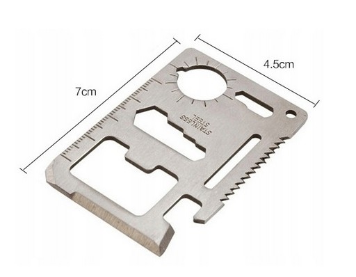 Karta przeżycia to wielofunkcyjny, kompaktowy zestaw narzędzi, który z łatwością zmieści się w Twoim portfelu lub kieszeni. Wykonana z wytrzymałej stali nierdzewnej, jest idealnym rozwiązaniem dla każdego, kto ceni sobie praktyczność i funkcjonalność w każdych warunkach.