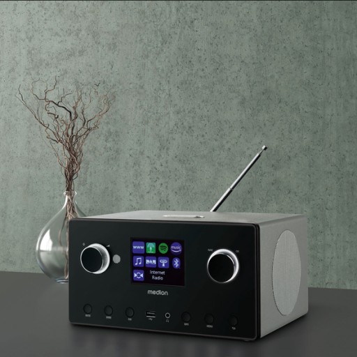 Bezprzewodowe radio internetowe Medion MD89295 pozwala odbierać stacje radiowe za pośrednictwem tradycyjnych kanałów FM i Internetu. W przypadku internetowych stacji radiowych wykorzystuje się łącze WLAN 802.11 a / b / g / n. Transmisja może być szyfrowana za pomocą WEP / WPA / WPA2 i pozwala odbierać ponad 15 000 stacji radiowych i podcastów. Wystarczy tylko podłączyć radio do internetu. Odbiór normalnych stacji radiowych odbywa się za pomocą tunera FM lub cyfrowego radia DAB +. Dzięki odbiornikowi DAB + można odbierać i odtwarzać programy radiowe o wyższej jakości.