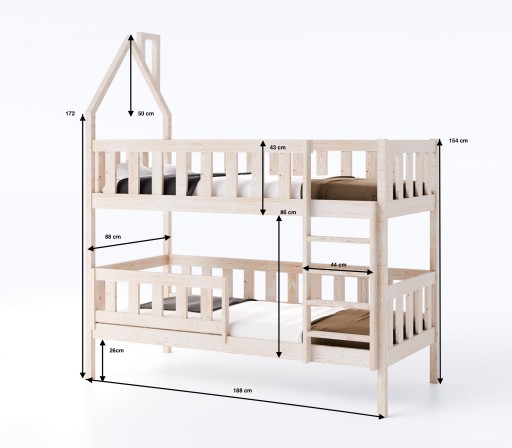 Konstrukcja z wysokiej jakości drewna sosnowego, dzięki czemu nasze łóżka są stabilne i wytrzymałe.
