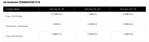 Producent gwarantuje skuteczność i trwałość nawet do 100 000 km przebiegu. Po tym okresie należy ponownie użyć Ceramizatora.
