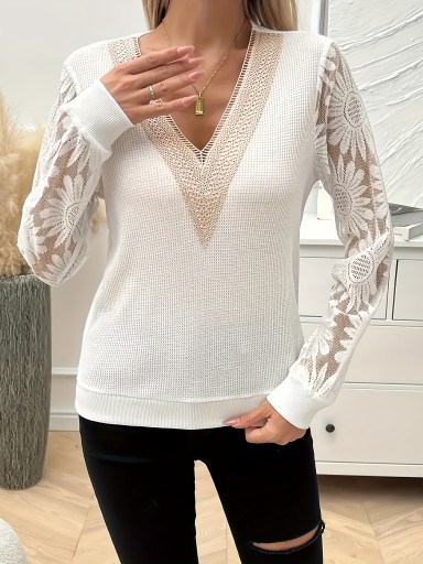 Bluzka koronkowa z długim rękawem i dekoltem w serek to wyjątkowa propozycja dla kobiet ceniących elegancję i subtelny urok.