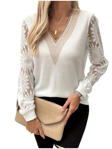 MODNA BLUZKA DAMSKA ELEGANCKA Z DŁUGIM RĘKAWEM KORONKOWA AŻUROWA WIECZOROWA
