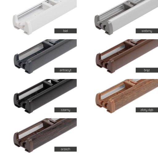 ▫ biel ▫ antracyt ▫ czarny ▫ orzech ▫ srebrny ▫ brąz ▫ złoty dąb