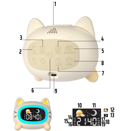 Pozwól swojemu dziecku nauczyć się dobrych nawyków związanych ze snem dzięki temu urokliwemu budzikowi w kształcie kociaka.