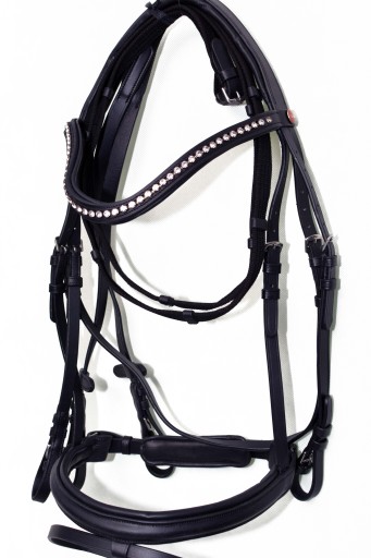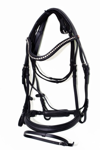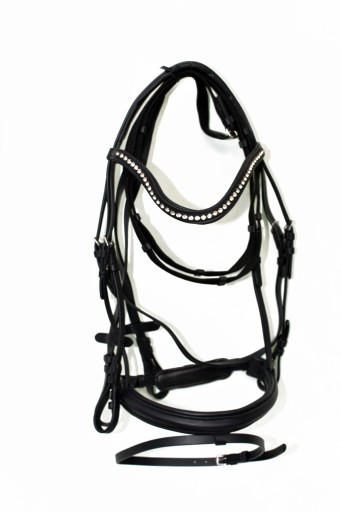 Ogłowie +Wodze Anatomiczne profilowane roz.X- FULL.Ogłowie wyprodukowane w zakładzie Rymarskim w Anglii .Wykonane z najwyższej jakości skóry bydlęcej bardzo miękkiej i miłej w dotyku , część potyliczna i naczółek poszyty miękko skórą ,aby zapobiec obtarciom .Ogłowie zapinane i regulowane jest na stabilne sprzączki , wykonane z bardzo dobrej nierdzewnej stali szlachetnej . Zapraszam do zakupu.