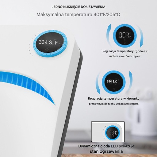 - Zakres temperatury: 40-205°C