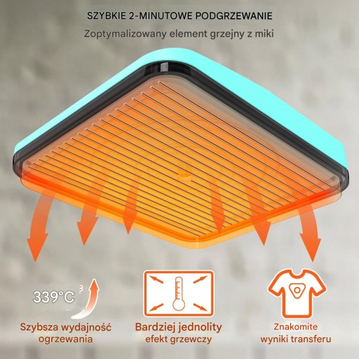 - Wymiary płyty grzewczej: 22,8 × 22,8 cm