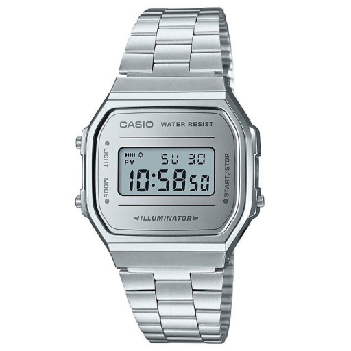 Casio A168WEM-7EF – kultowy zegarek retro z lustrzaną, srebrną tarczą